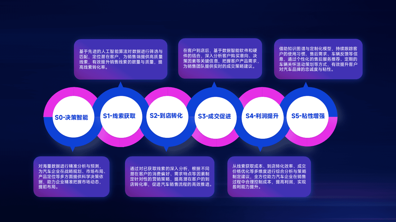 通过拓宽潜在客户来源、、、优化线索分配并提高到店转化率,,,以增强销售效率。。同时,,利用线索数据不断优化分析模型,,有效提升转化率,,扩大营销影响力。。。。
